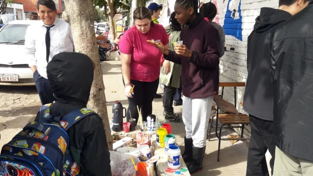 This morning was good. I woke up late but it was worth it. I grabbed a piece of bread and 3 pieces of ham and then we rushed to go buy paint and head to a school in Santa Ana (a working neighborhood in Asuncion) where we were helping to paint a mural on the school’s walls. Personally, I love children and having so many Paraguayan children come and want to help us out was touching.