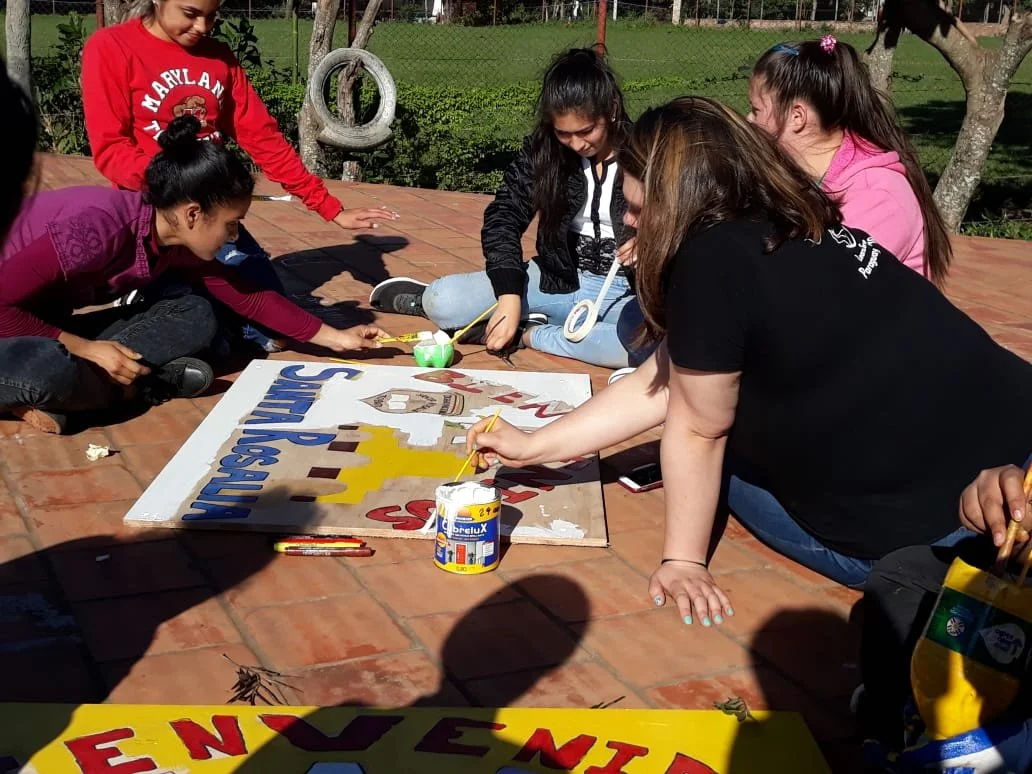Today, LearnServe Abroad Paraguay had a wonderful experience working together with Santa Rosalia's students -- to better the school surroundings, and supply them with materials needed to improve the education within the classrooms. Our day started off as usual, by having breakfast with our amazing host families. The very first activity we had when we arrived at Santa Rosalia school was an ice breaker, and we played the game Ninja. For many of the Tobati students, it was a new experience since they've never played Ninja before. It made me happy that we could introduce a new and memorable experience through a simple game. I believe by seeing their facial expressions that at first they felt very nervous and uncomfortable trying it out (and making a silly ninja sound didn't make it any better) but later they seemed more comfortable as it went through. Many of them seemed to really like the game and it also turned into a competition! The Tobati students were even going hard on us -- no joke.