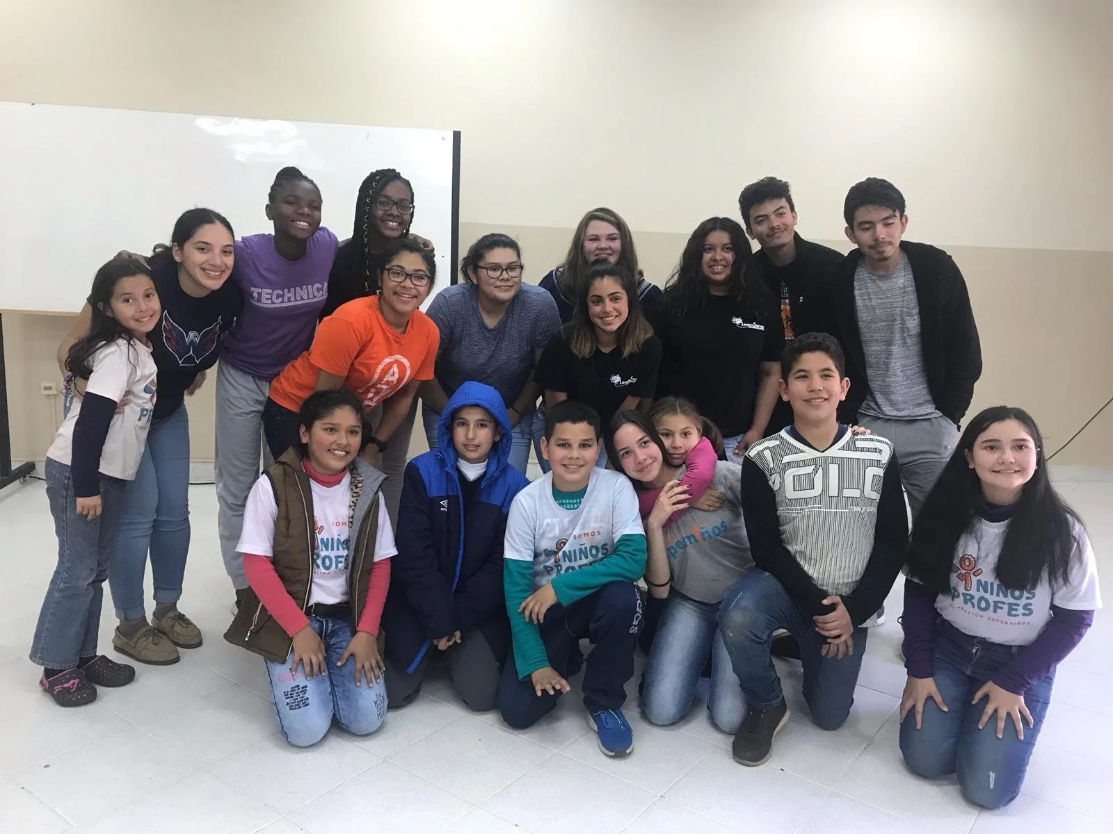 After a while the Super Kids finally got to the school and there were A LOT of them. I wasn't expecting so many kids! The fact that there were almost 50 students did make me a little anxious. Although we are older than them, younger kids tend to be brutally honest and, here in Paraguay, I know I’m fascinating to most of them because of the way I look and the color of my skin. Those thoughts aside, all of the kids were super nice and smart. Some of them presented themselves and their organization in English, which was really impressive. Here we had about five kids, from ages 10-11, who have all lived in Paraguay, a country that speaks two other separate languages, and they were all speaking English! When they were done we played games and continued to have fun and interact with them.